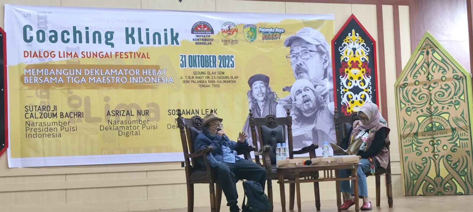 WAHANAPALANGKA, PALANGKA RAYA – Dewan Kesenian Kota Palangka Raya (DKPR) menggelar Coaching Klinik Dialog Lima Sungai Festival: Membangun Deklamator Hebat Bersama Tiga Maestro Indonesia, di Gedung Olah Seni Tjilik Riwut Km 25, Palangka Raya, Jumat (31/10/2025).